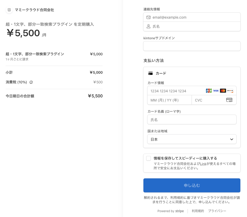 購入ボタンを押すと別の画面が表示されるので、必要事項を入力して申し込んでください。